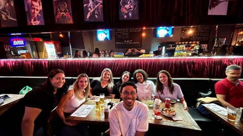descontraído e acolhedor. O encontro aconteceu no Vesuvio On Tap Bar, em São Paulo, espaço conhecido pelo clima agradável, boa música e opções de bebidas que contribuíram para uma noite leve e especial.