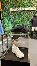 Toda a montagem foi pensada para garantir praticidade no uso, boa circulação de pessoas e clareza na apresentação das peças. Elementos visuais, materiais e layout foram definidos em conjunto com a Essilor para assegurar consistência com os valores da marca.